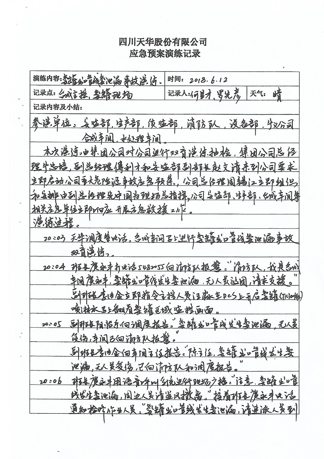 合成氨車間雙盲應(yīng)急演練