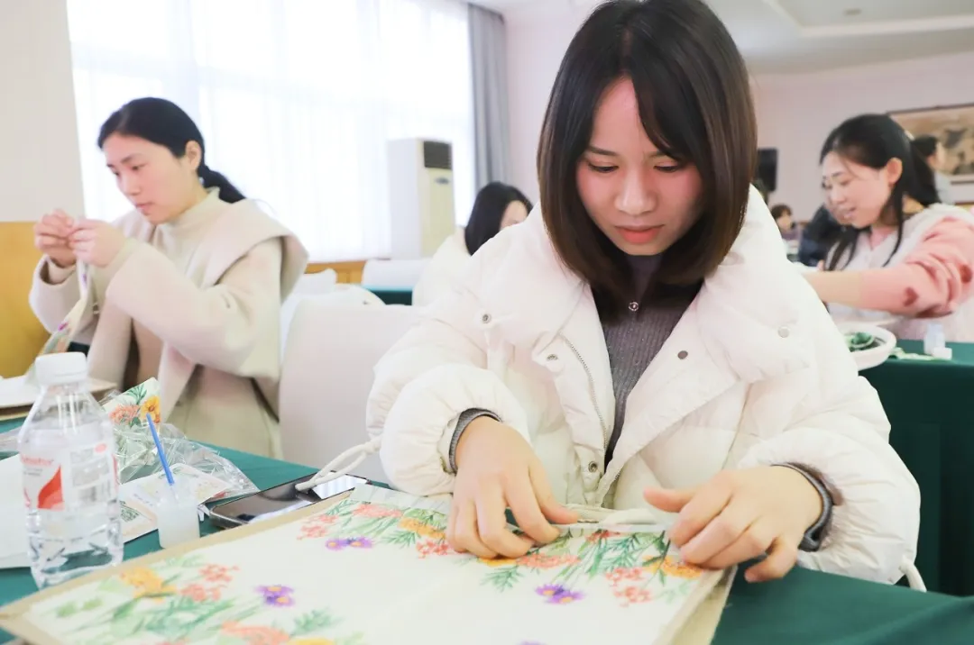 隨后,活動進入“巧手慧心·女工創藝”DIY手工制作環節。女職工們在帆布袋上盡情揮灑創意。她們或低頭思考,或相互交流,一個個色彩斑斕、獨具特色的手繪布袋在她們手中逐漸成形。女職工們的臉上洋溢著喜悅和自豪,更體現了對生活的熱愛和追求。