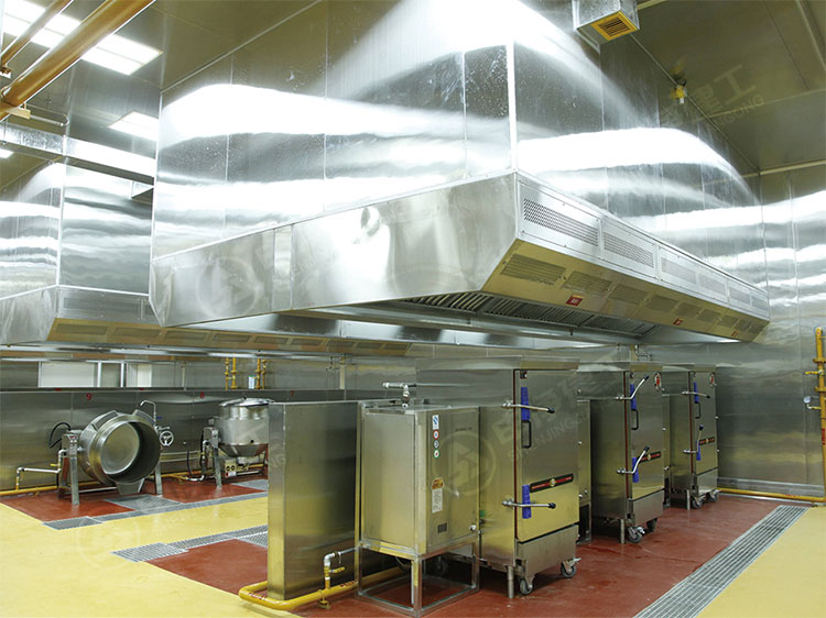 本項目位于深圳市某中央廚房科技有限公司,該公司業務主要聚焦于中央廚房與餐飲食品工業化項目的策劃咨詢、規劃設計、施工監理、教育培訓、營養餐研發與標準化、管理輸出服務、應用軟件研發、工業4.0研究及產業鏈整合,致力于成為國內中央廚房建設與運營解決方案服務商的探索者和領跑者。該中央廚房潔凈度要求十萬級SC標準化中央廚房潔凈裝修工程,凈化面積2860平方米。
